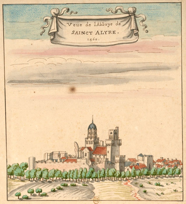 En una data indeterminada de la segona meitat del segle VII, el lloc fou ocupat per una comunitat monàstica, que l’any 865 fou arrasada durant una incursió normanda. Cap a l’any 937, el monestir fou restaurat, i el 954 el rei Lotari I en confirmà la fundació. El primer abat conegut d’aquesta nova etapa fou Bernard. Més endavant, l’establiment s’integrà a l’orde de Cluny, fet que propicià la seva reconstrucció. L’any 1106, el papa Pasqual II beneí l’església del monestir. El 1311 es recuperaren les restes de sant Alyre, que foren col·locades en un nou sepulcre dins l’església.
