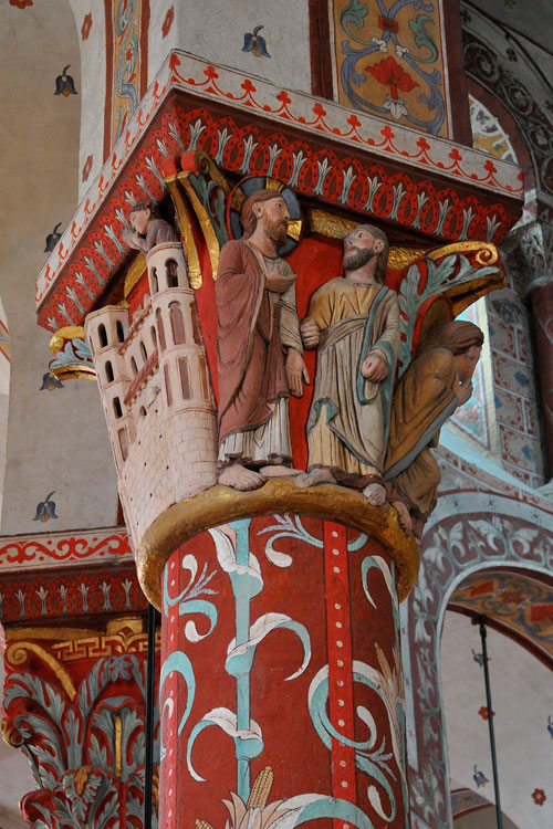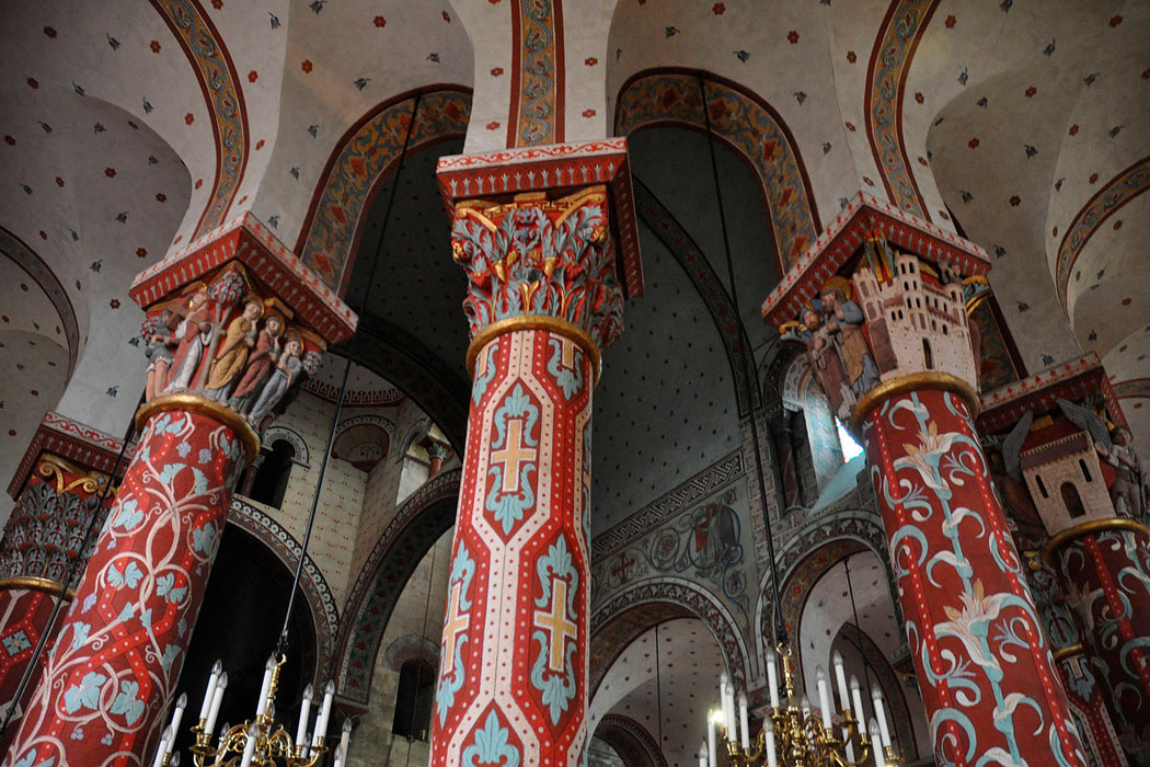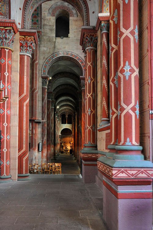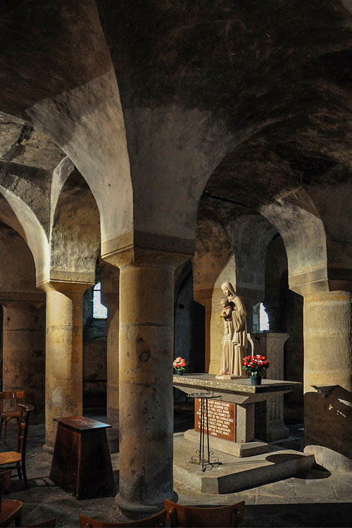 Aunque no se dispone de noticias precisas sobre su edificación, se considera que la iglesia actual se levantó en el siglo XII. Tras sufrir los efectos de las guerras de Religión y de la Revolución, en el siglo XIX se inició su conservación y restauración, momento en el que se erigieron algunas estructuras nuevas, como la fachada y los campanarios. El resultado es una iglesia parroquial muy amplia, con tres naves de siete tramos, un nártex y un transepto que da acceso a la cabecera, formada por un amplio presbiterio rodeado de un deambulatorio con cinco capillas radiales. El repintado interior corresponde también a esta época.