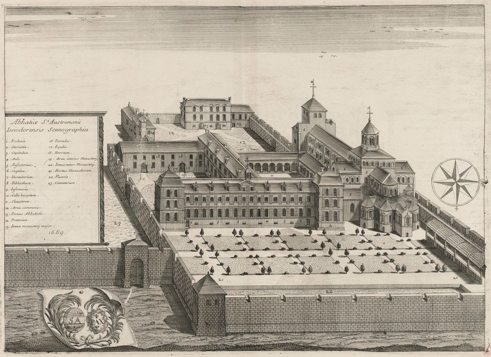 En cuanto al monasterio, un texto del siglo IX menciona una fundación legendaria atribuida al propio Austremonio, posiblemente de origen eremítico. Aquel establecimiento primitivo habría desaparecido en el año 732 a causa de una incursión normanda. Más allá de la tradición, lo cierto es que en 938 la abadía de Issoire fue fundada, o quizás restaurada, por monjes procedentes de Saint-Sauveur de Charroux (Viena), que se refugiaron allí debido a una nueva invasión normanda. También se sabe que en 937 el obispo Bernardo de Clermont había consagrado una iglesia anterior a la actual.