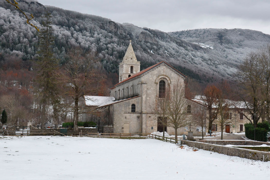 La abadía cisterciense de Notre-Dame de Léoncel se fundó en el año 1137 en un valle apartado del macizo de Vercors, al este de Vienne. El territorio, además de estar alejado de los núcleos habitados, era inhóspito debido a las rigurosas condiciones climáticas que afectaban aquel lugar. La fundación fue patrocinada por la abadía de Bonnevaux (Isère), hoy desaparecida, que envió allí al monje Amédée con el encargo de adaptar el emplazamiento a la actividad monástica.