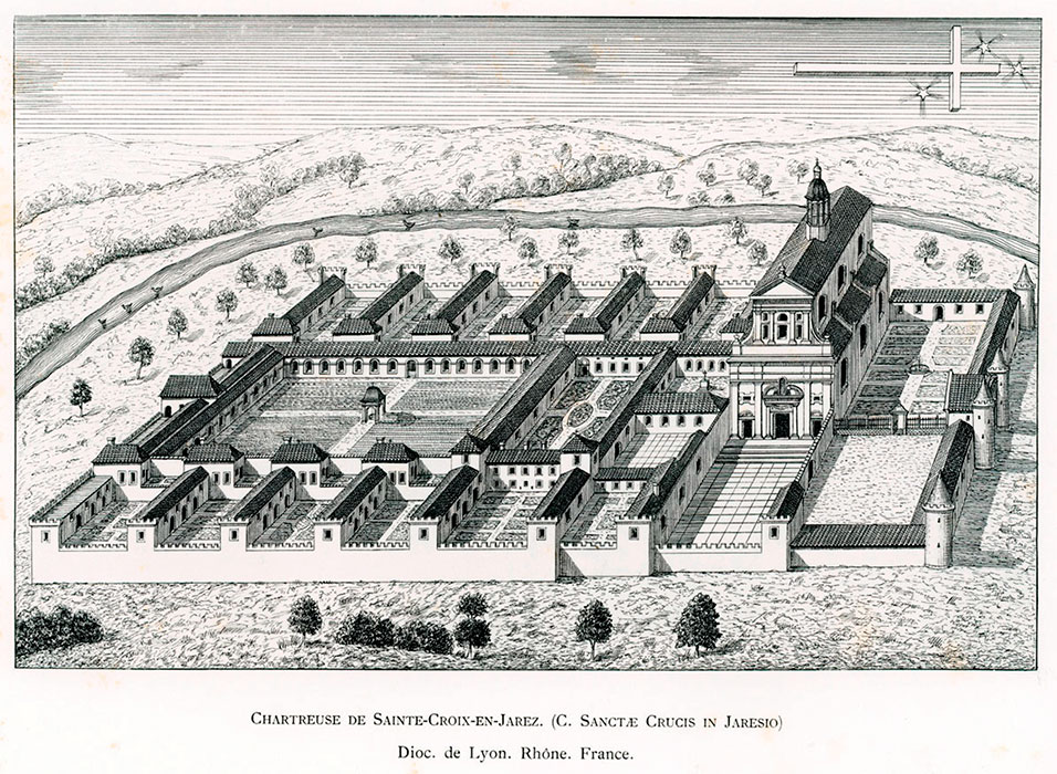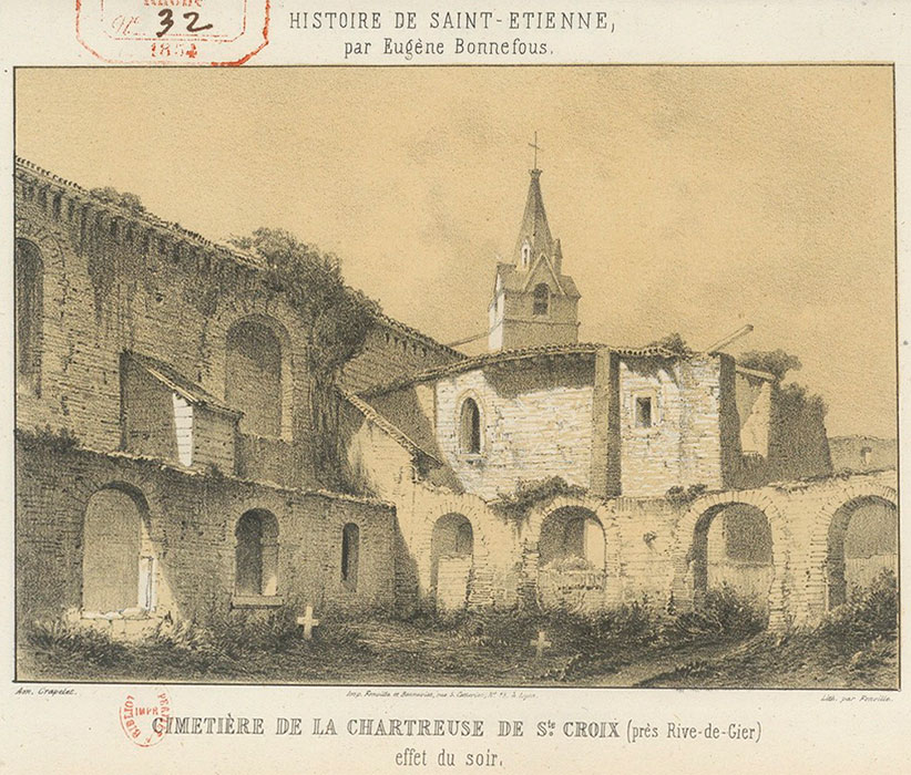 Durante la primera mitad del siglo XIV se levantó la primera iglesia destinada a la comunidad, ya que hasta entonces se habrían utilizado construcciones provisionales. En 1629, un incendio afectó gravemente a la cartuja, especialmente a la iglesia, que se reconstruyó en el emplazamiento del antiguo refectorio, mientras que el edificio del siglo XIV se adaptó a otros usos. A consecuencia de la Revolución francesa, en 1790 comenzó el desmantelamiento del monasterio y parte de la comunidad se dispersó; en 1792 partieron los cinco últimos monjes que aún residían en él y se vendieron sus bienes. El lugar fue progresivamente ocupado por viviendas, y la iglesia acabó asumiendo funciones parroquiales. En 1888, el núcleo se independizó administrativamente, dando lugar a la comuna de Sainte-Croix-en-Jarez.