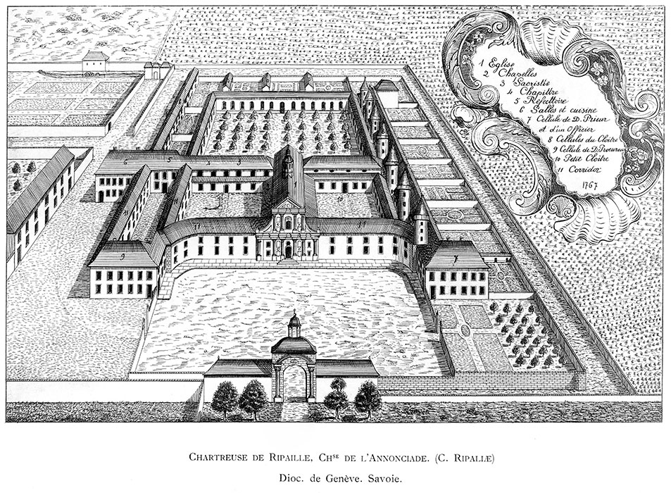 François de Sales occupa le siège épiscopal de Genève entre 1602 et 1622. Durant son épiscopat, une solution fut trouvée : le site de Ripaille fut confié aux chartreux et ceux-ci purent s’y établir en 1624, donnant naissance à la chartreuse de l’Annonciade, plus connue sous le nom de chartreuse de Vallon-Ripaille. La reconstruction du monastère fut entreprise en réutilisant les structures de la résidence des ducs de Savoie, transformée par la suite en maison de chanoines réguliers augustiniens. La chartreuse subsista jusqu’à la Révolution : en 1793 elle était déjà abandonnée et il ne subsiste aujourd’hui que des éléments de la maison de campagne des ducs et des vestiges de l’époque cartusienne, résultat des différentes constructions, destructions et transformations intervenues au fil des époques et des occupants du site.