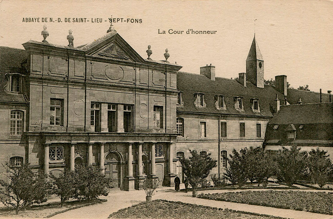 L’abbaye cistercienne de Sept-Fons fut fondée en 1132 à partir du monastère de Fontenay (Côte-d’Or), lui-même dépendant de Cîteaux, tous deux situés en Bourgogne. À cette époque, elle portait le nom de Notre-Dame de Saint-Lieu. On rapporte que saint Bernard de Clairvaux participa lui-même à la fondation et que certains des moines venus à Saint-Lieu étaient de sa famille.