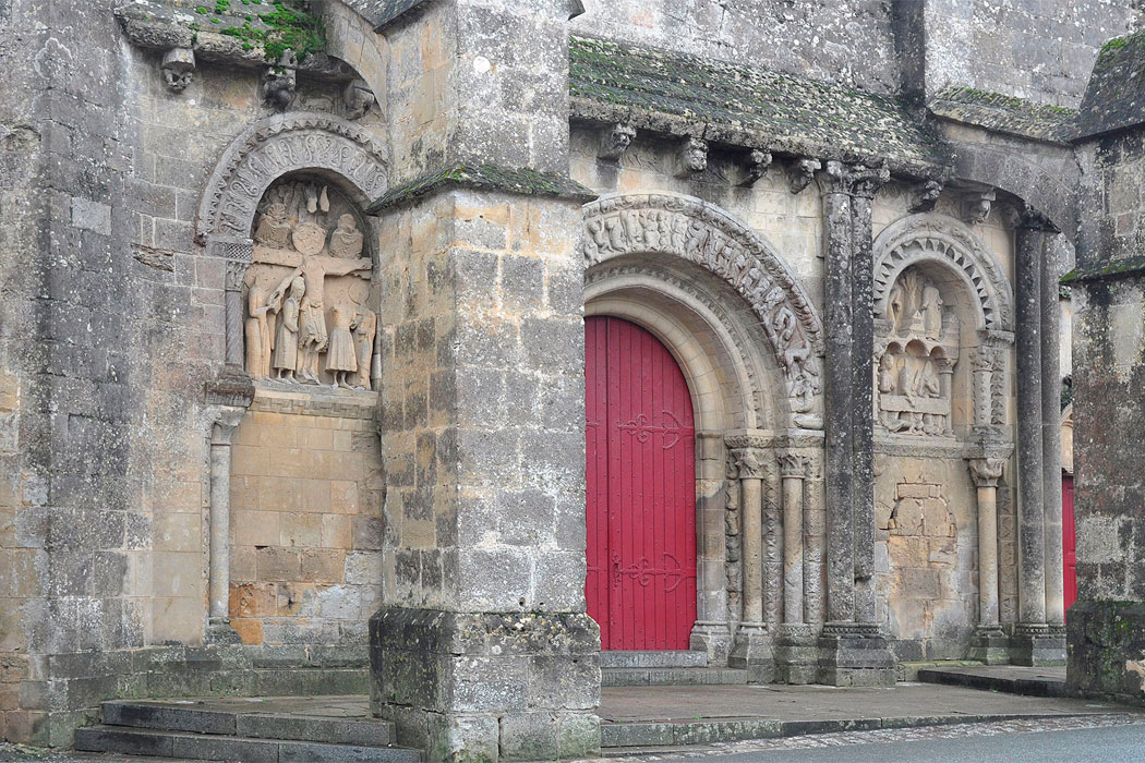 This first building was rebuilt during the 12th century, from which part of the present façade still survives. Following the damage suffered during the Hundred Years’ War, as well as that caused by Geoffrey II of Lusignan, lord of Vouvant, known as Grand Dent (c. 1195–1248), the complex was reconstructed in the Gothic period (15th century), preserving much of the sculptural decoration of the Romanesque façade. In 1562 or 1568, the church again fell into ruin, this time as a result of the Wars of Religion, which, in addition to damaging the sculptures, left it without the vaults that had covered it.