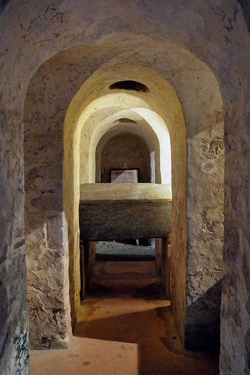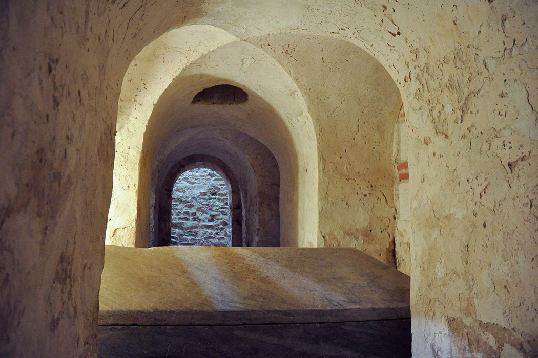 The monks took with them their most valuable possessions, including the remains of Saint Philibert, along with his marble sarcophagus. They then began the construction of new spaces intended to house the relics, which were venerated there due to the miraculous events attributed to them. Their stay at Déas was, however, short, as Norman attacks also reached this place. After the burning of Noirmoutier in 846, Déas was attacked in 847 and, in 848, the monks were forced to abandon it due to its destruction. In 858, the relics, which had been hidden within the crypt, were recovered.