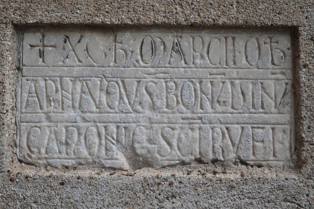 Inscription faisant référence au chanoine Arnaudus Bonum Vinum