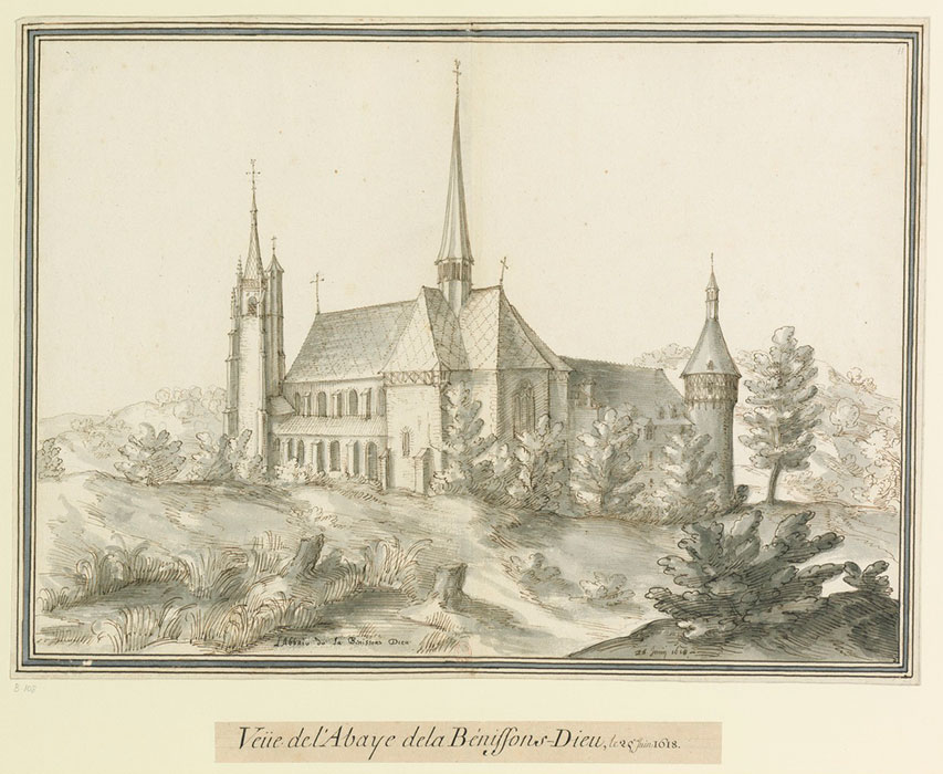 El monestir cistercenc de Notre-Dame de La Bénisson-Dieu fou fundat l’any 1138 a partir de l’abadia de Claravall (Aube). La tradició afirma que el mateix Bernat de Claravall (1090-1153) hauria participat directament en el seu establiment: va visitar el lloc i hi va enviar la primera comunitat cistercenca, sota la direcció d’Alberic, que en fou el primer abat.
