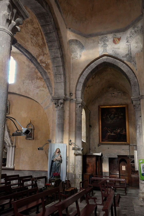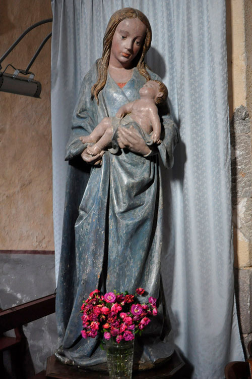 A pesar de las transformaciones sufridas con el paso del tiempo, conserva todavía la fisonomía del siglo XVII. En cuanto a la iglesia, se trata de una construcción de origen románico, con una sola nave de dos tramos, crucero y tres ábsides semicirculares. La cabecera es la parte más antigua y conserva capiteles románicos. La fachada occidental presenta un portal apuntado y, sobre él, un campanario de espadaña con cuatro arcadas. En el interior se venera una imagen de la Virgen atribuida a la escuela de Michel Colombe (†1515). El ábside conserva pinturas murales de finales del siglo XV, contemporáneas de las reformas efectuadas entonces.