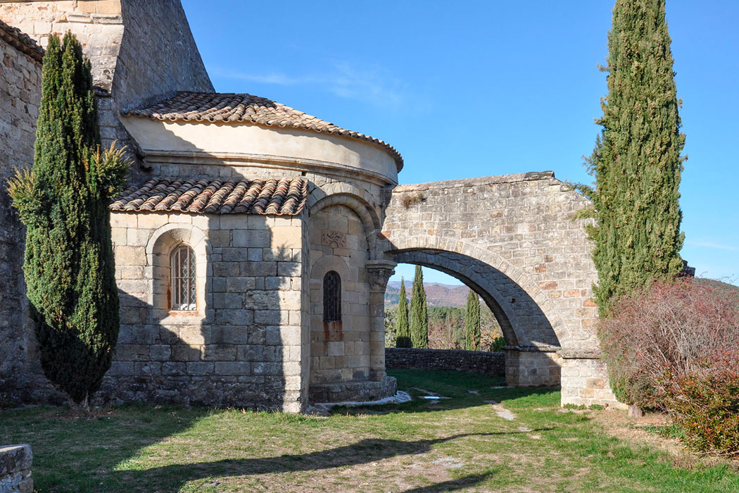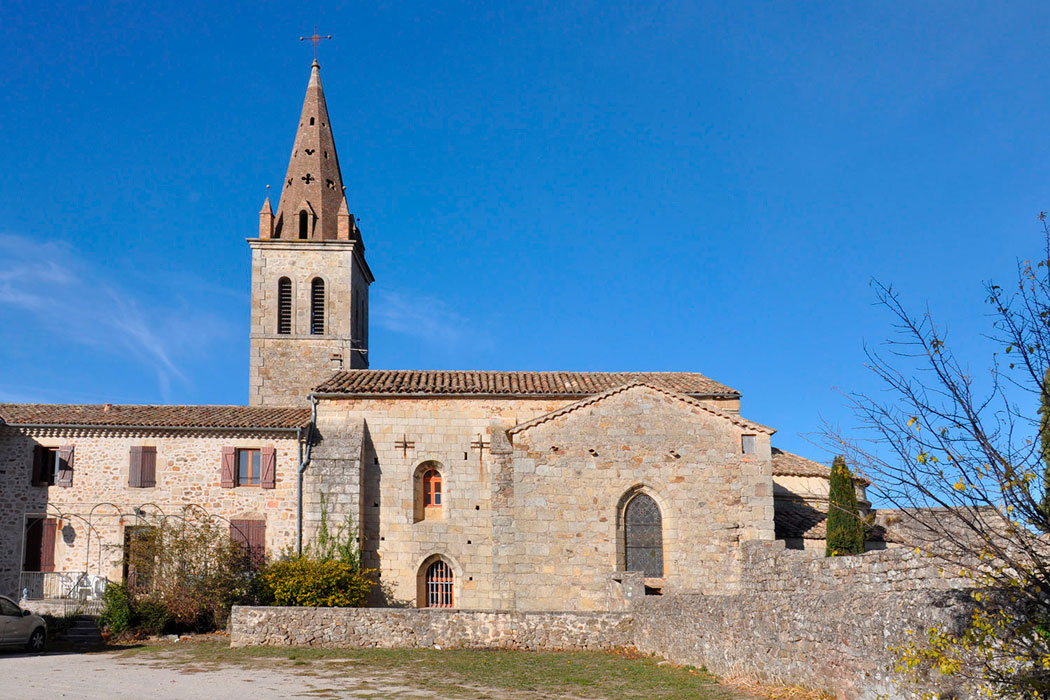Fue un establecimiento con cierta estabilidad económica gracias a su actividad agrícola, hecho que puede explicar la cuidada decoración escultórica que todavía conserva. Durante el siglo XVI se añadieron tres capillas góticas a la nave románica primitiva. Gracias a la protección de los señores de Aubenas y a su situación aislada, no quedó directamente afectado por las guerras de Religión. En el siglo XVII se levantaron nuevas construcciones que modificaron la fisonomía de la iglesia, como los arbotantes que sostienen el ábside. Durante el siglo XIX aún se realizaron otras intervenciones arquitectónicas. La iglesia es de nave única, con ábside y capillas añadidas posteriormente. El campanario es del siglo XIX.