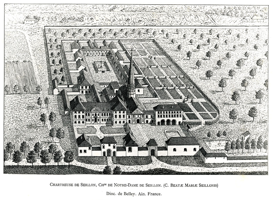La chartreuse de Seillon est située à Péronnas, près de Bourg-en-Bresse, et les circonstances de sa fondation demeurent obscures. On a affirmé qu’elle fut établie vers 1178 à partir d’un prieuré bénédictin dépendant de l’abbaye disparue de Joug-Dieu (Ain), lorsque la communauté décida de suivre les coutumes chartreuses. Une autre tradition la rattache à l’abbaye d’Ambronay (Ain). L’un de ses promoteurs fut Humbert de Bâgé, archevêque de Lyon entre 1148 et 1153, qui se retira comme chartreux, peut-être en ce lieu même.