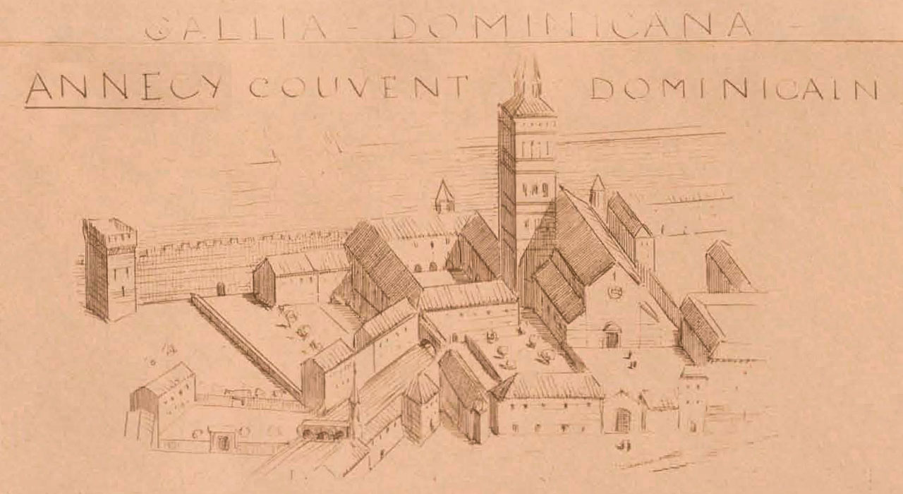 Le couvent des dominicains d’Annecy fut fondé en 1422 par la volonté du cardinal Jean de Brogny (1342-1426), originaire de ce territoire. En 1445, son église, encore inachevée, fut consacrée et dédiée à Saint-Nicolas. En 1533, un chapitre provincial de l’ordre s’y tint.